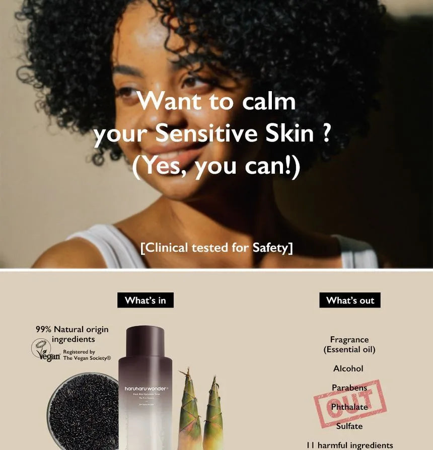 Fermented Black Rice (Oryza Sativa) Extract, Hyaluronic Acid, Bamboo Shoot Bark Extract, Beta-Glucan, Red Ginseng Extract, Betaine.