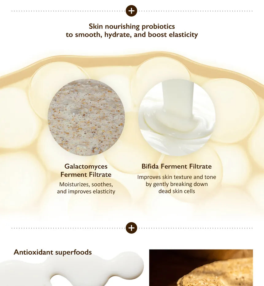Soothes & Brightens: Calms irritation and brightens dullness using antioxidant-rich Fermented Black Rice and probiotics, revealing a more even-toned, radiant glow.