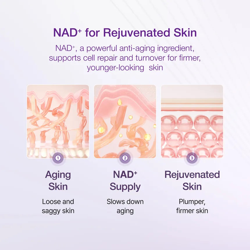 • Firms and Lifts Sagging Skin: A potent blend of 50 peptides and NAD+ works to restore skin's natural elasticity, combating sagging and improving overall firmness.